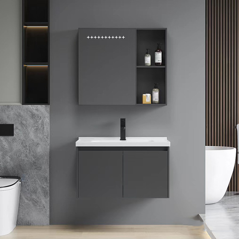 Tủ Lavabo Kết Hợp Tủ Gương Nhôm Màu Xám