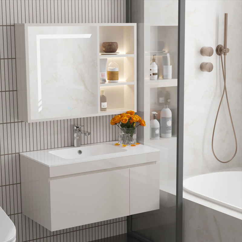 - Ánh sáng hiện đại: Tủ gương tích hợp LED hắt sáng, mang lại không gian phòng tắm hiện đại và tiện nghi.